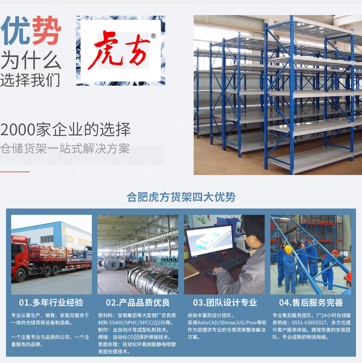- 合肥虎方貨架有限公司從事經(jīng)營(yíng)倉(cāng)儲(chǔ)貨架、物流周轉(zhuǎn)及搬運(yùn)設(shè)備、倉(cāng)庫(kù)管理系統(tǒng)等相關(guān)產(chǎn)品的生產(chǎn)、銷(xiāo)售、設(shè)計(jì)、安裝及采購(gòu)集成服務(wù)。 公司主要產(chǎn)品:貨位式貨架、倉(cāng)儲(chǔ)重型貨架、擱板式貨架、閣樓式貨架、駛?cè)胧截浖?、鋼平臺(tái)貨架、穿梭式...